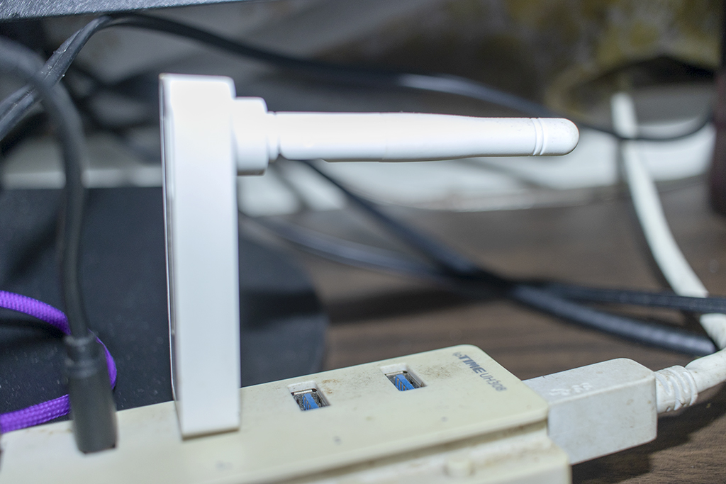 그런데 USB 멀티 허브 같은 곳에 장착을 할 때는 선이 연장되면서 인도넷 속도도 느려지고 지연 시간도 길어지므로 컴퓨터 본체에 있는 USB 단자에 장착해 사용하는 것이 좋습니다.