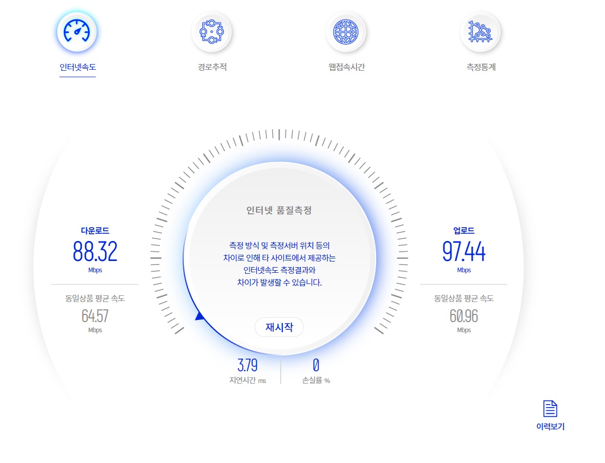 무선이라 유선으로 연결했을 때보다 인터넷 접속 속도가 많이 차이가 날 줄 알았는데 별로 차이가 없는 것 같습니다.