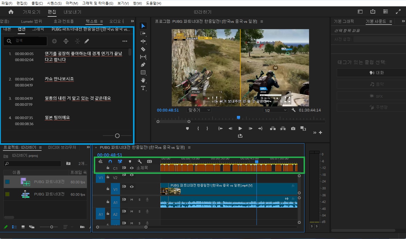 프리미어 프로 자동 한글 자막 만들고 텍스트 스타일 적용하기. 본문